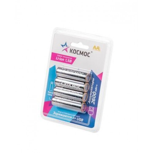 Аккумулятор литиевый Космос R6 АА Li-ion 2600 mWh 4 шт на блистере 4BL зарядка от USB