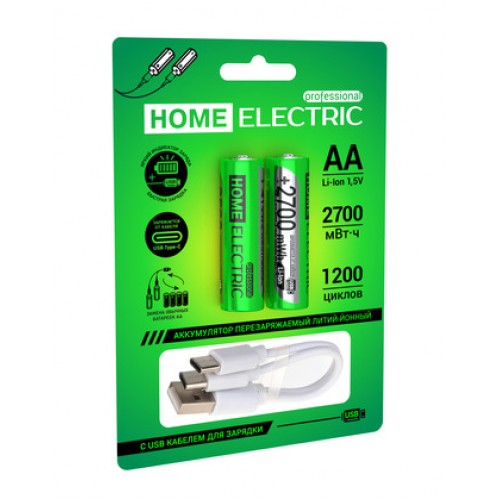 Аккумулятор литий-ионный HOME ELECTRIC Professional АА 2700 mWh 1,5V USB 2BL