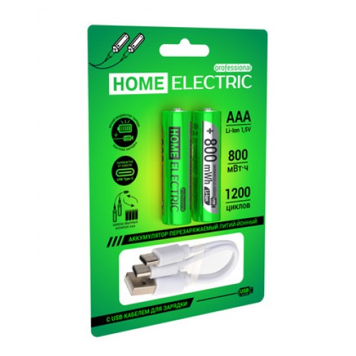 Аккумулятор литий-ионный HOME ELECTRIC Professional АА 800 mWh 1,5V USB 2BL