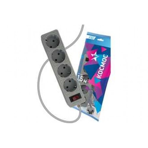 Сетевой фильтр КОСМОС 1,5м 4 гнезд, пвс 3х0,75мм2, серый