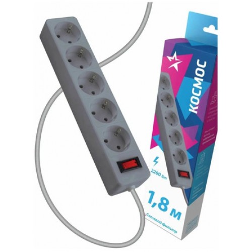 Сетевой фильтр КОСМОС 1,8м 5 гнезд, пвс 3х0,75мм2, серый