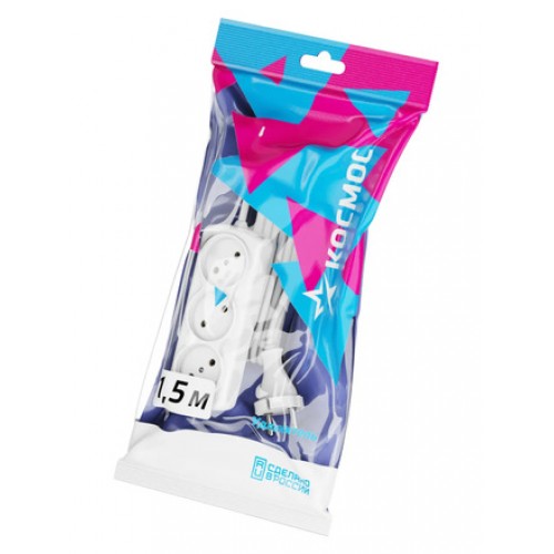 Удлинитель КОСМОС 6А 3 гнезда ПВС 2*0,75 (1,5м) Р16-010 Россия