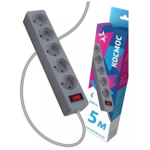 Сетевой фильтр КОСМОС 5м 5 гнезд, пвс 3х0,75мм2, серый