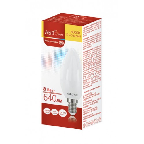 Лампа светодиодная АБВ LED лайт Свеча С37 8W E14 3000К