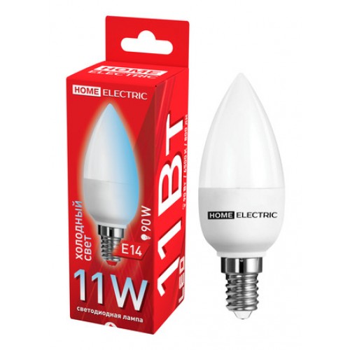 Лампа светодиодная HOME ELECTRIC Свеча 11W Е14 230v 6500K