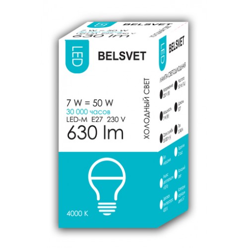 • Лампа светодиодная BELSVET LED-M G45 7 W 4000 K E27 (шарик)
