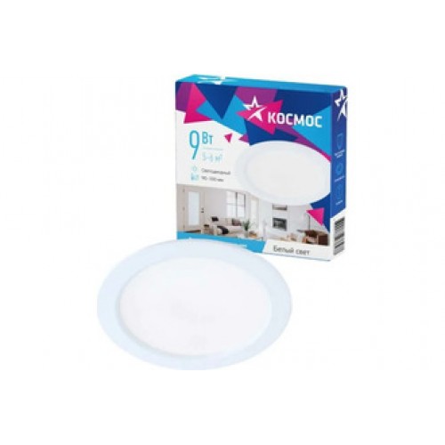 Светодиодная панель, круглая, цвет белый, КОСМОС DownL 9W, 180-265В, 4000K (KDownL9W4000K)