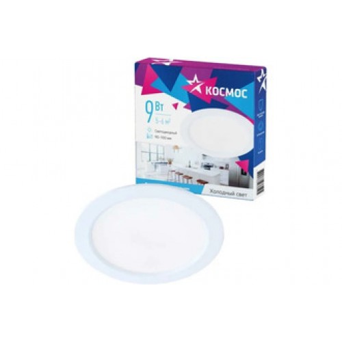 Светодиодная панель, круглая, цвет белый, КОСМОС DownL 9W, 180-265В, 6400K (KDownL9W6400K)