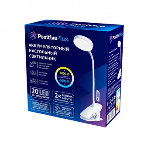 Светильник настольный светодиодный аккум. Positive Plus PP_QG003 на основ.+прищеп. 10W/6W USB-C Lith