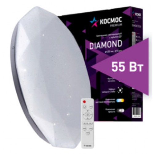Светильник светодиодный с пультом ДУ КОСМОС PREMIUM DIAMOND 55Вт 230В 3000-6500К 4400Лм 350*90мм