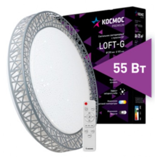• Светильник светодиодный с пультом ДУ КОСМОС  PREMIUM Loft-G 55Вт 230В 3000-6500K 4400Лм 390х105мм