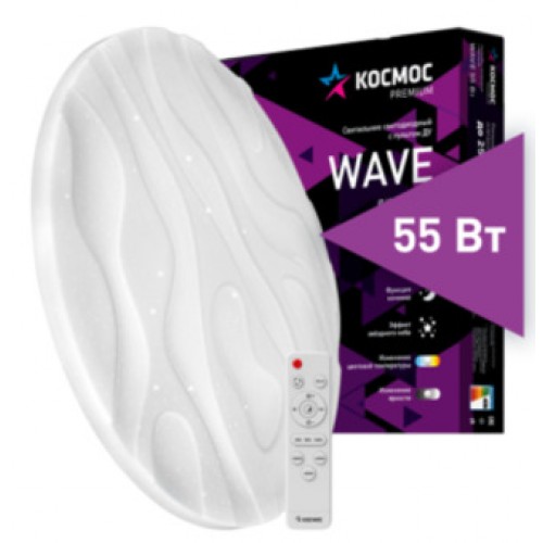 Светильник светодиодный с пультом ДУ КОСМОС PREMIUM WAVE 55Вт 230В 3000-6500K 4400Лм 400x75мм